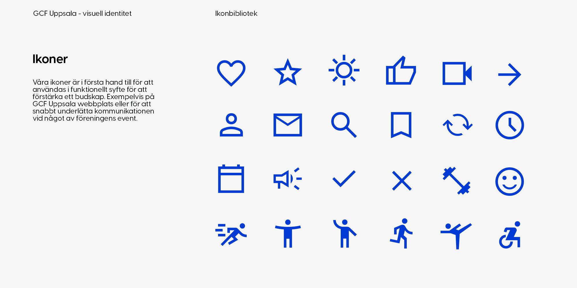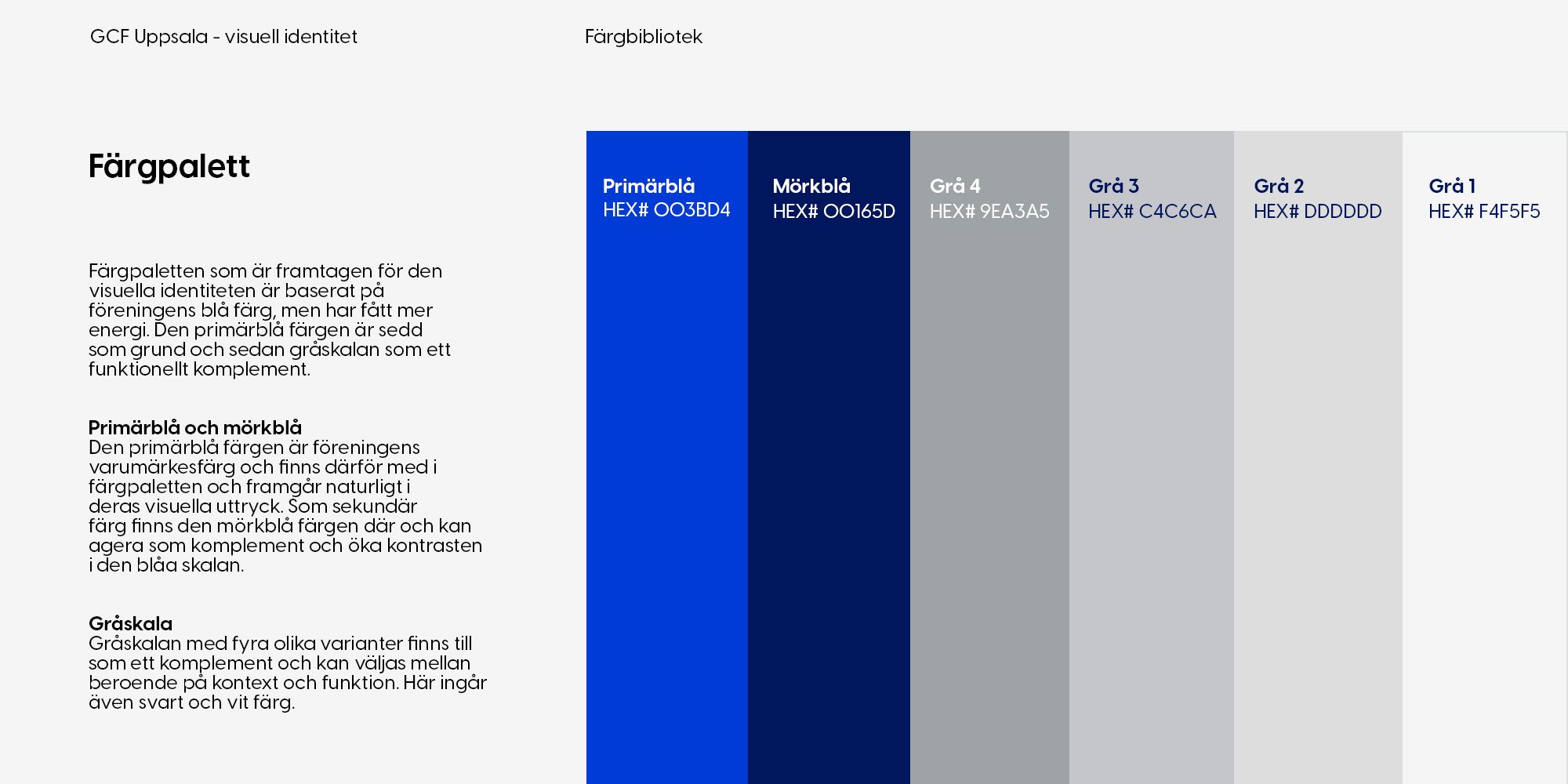 Identiteten är omsorgsfullt framtagen för att kommunicera det GCF Uppsala sysslar med och den personlighet som föreningen förknippas med. Med en tydlig koppling till föreningens värderingar och med en ny logotyp, symbol och grafiska element är den visuella identiteten ett viktigt verktyg i GCF Uppsalas föreningssarbete.